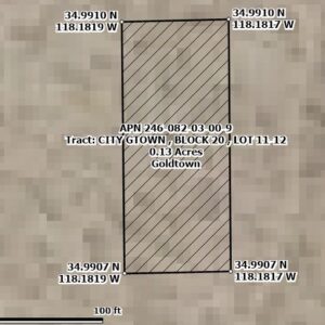 RARE FIND! Two adjoining lots sold as one large property in Goldtown which is a small subdivision located in Kern County, Southern California. It boasts a central location between the towns of Rosemond and Mojave. The lots are easily accessible, situated right off Silver Queen Road and Freeway CA 14. They are ideal for camping and recreation, and they offer an excellent opportunity to start a land portfolio with minimal capital. Additionally, a large gold mining operation is nearby, making these lots very interesting.