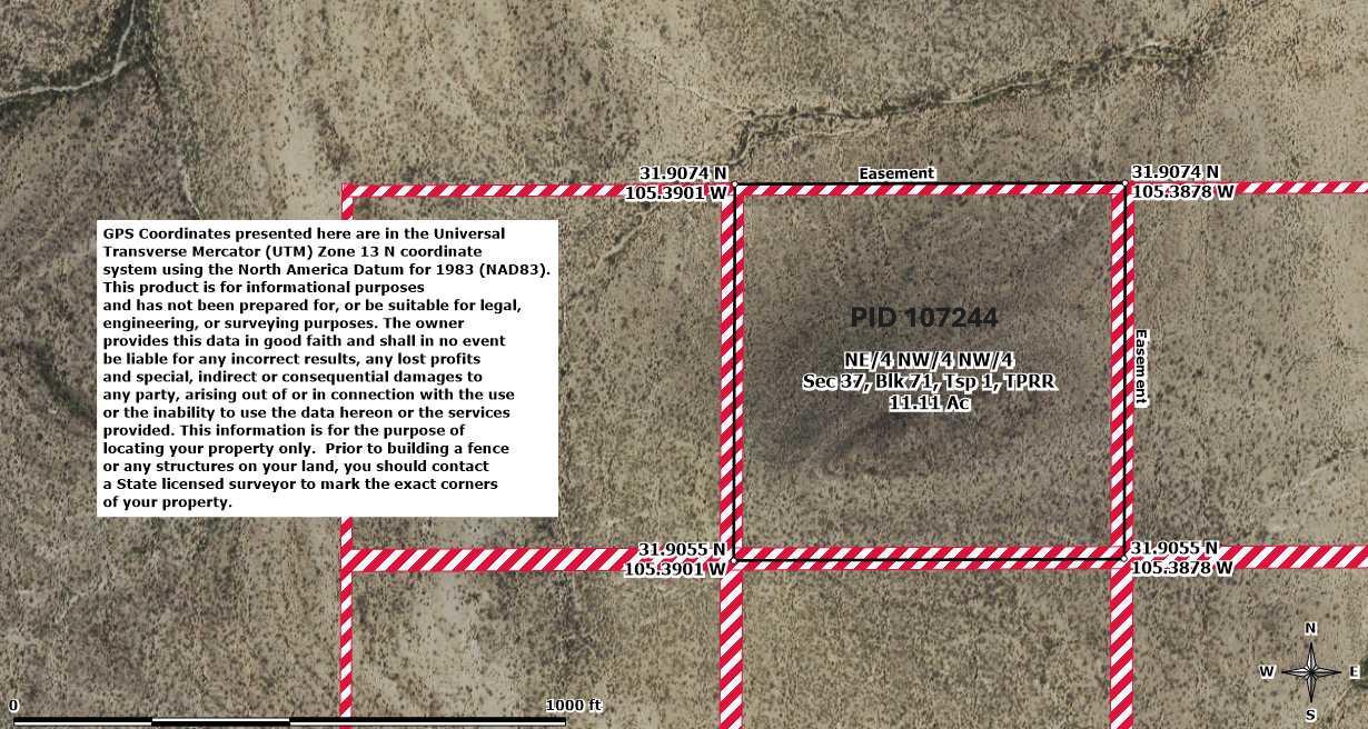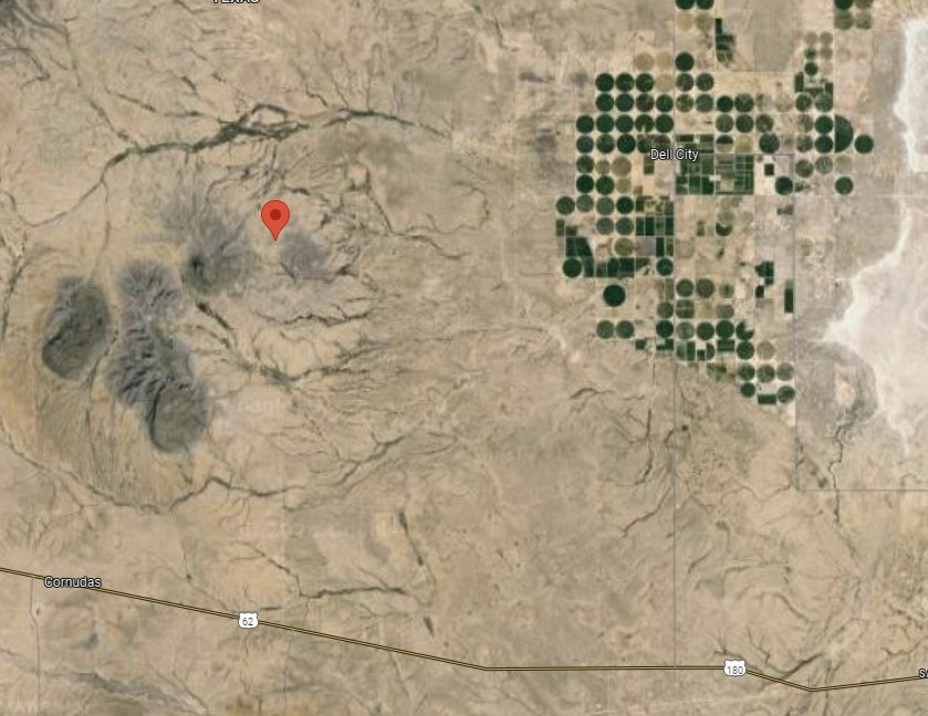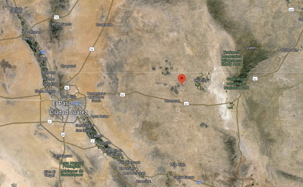 GPS Coordinates: 31.9074N, 105.3878W; 31.9074N, 105.3901W